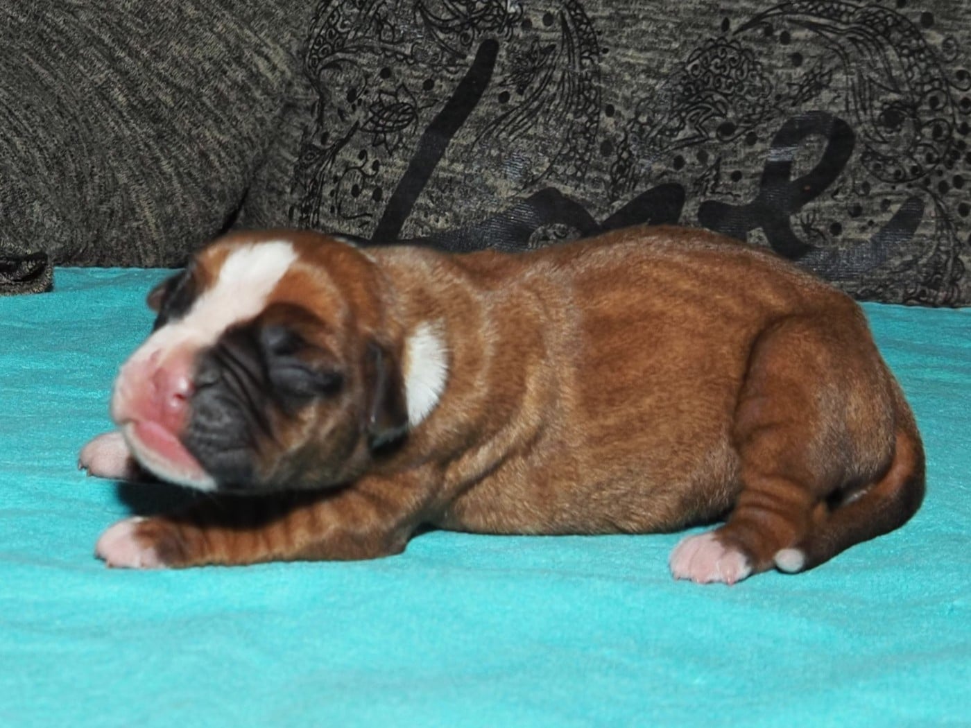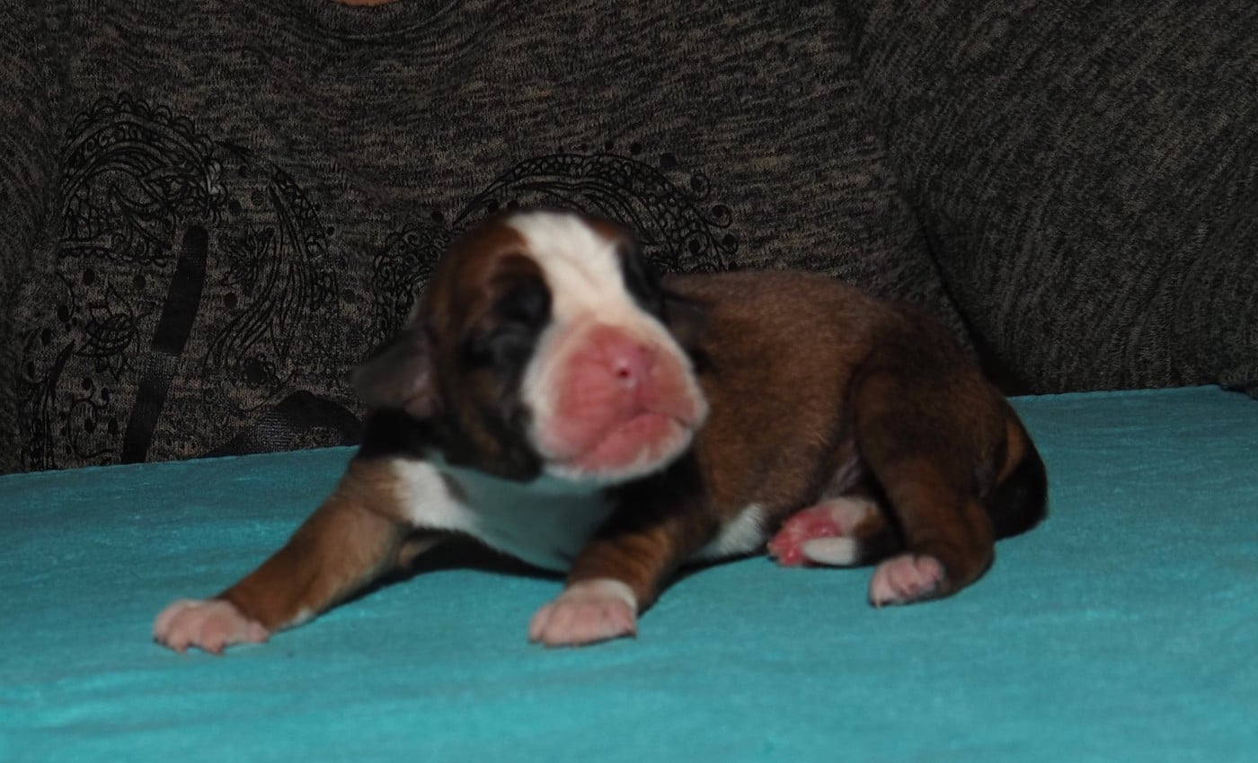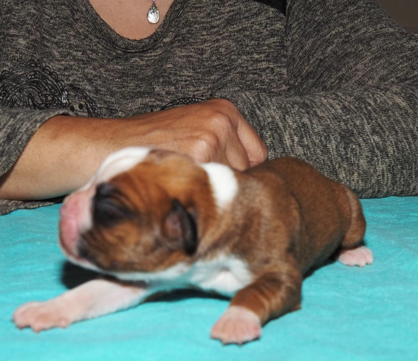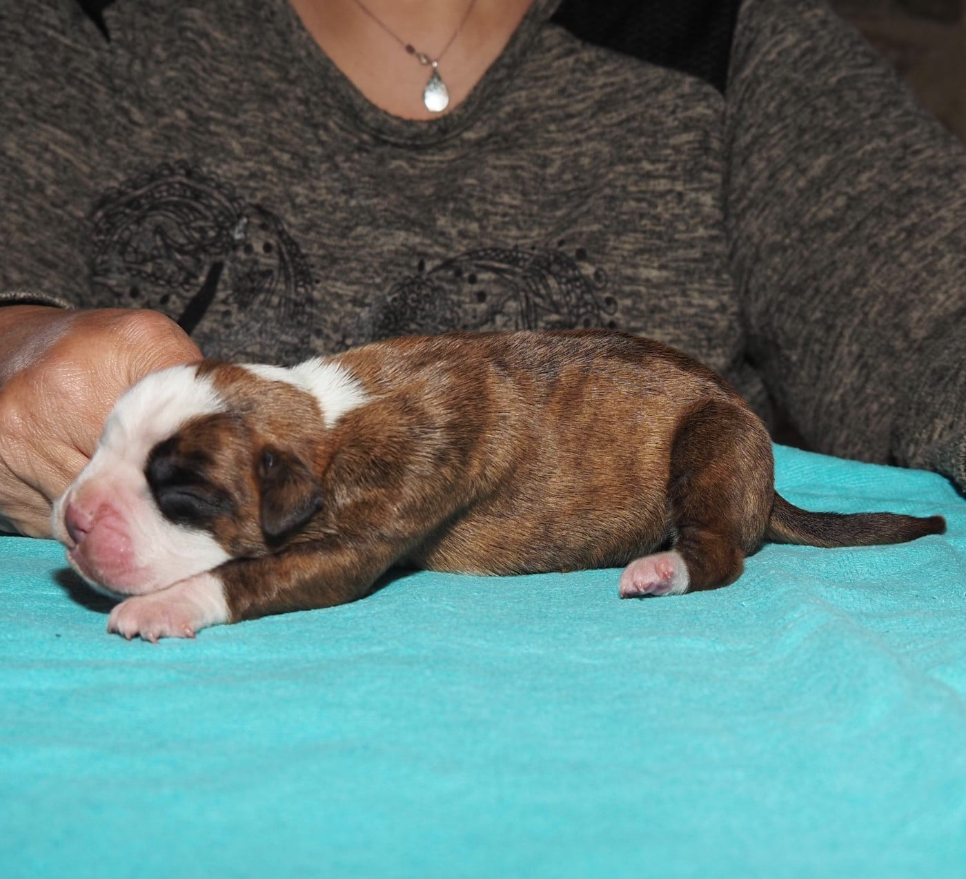 très jolie femelle marqué en blanc très compact et une belle expression faciale