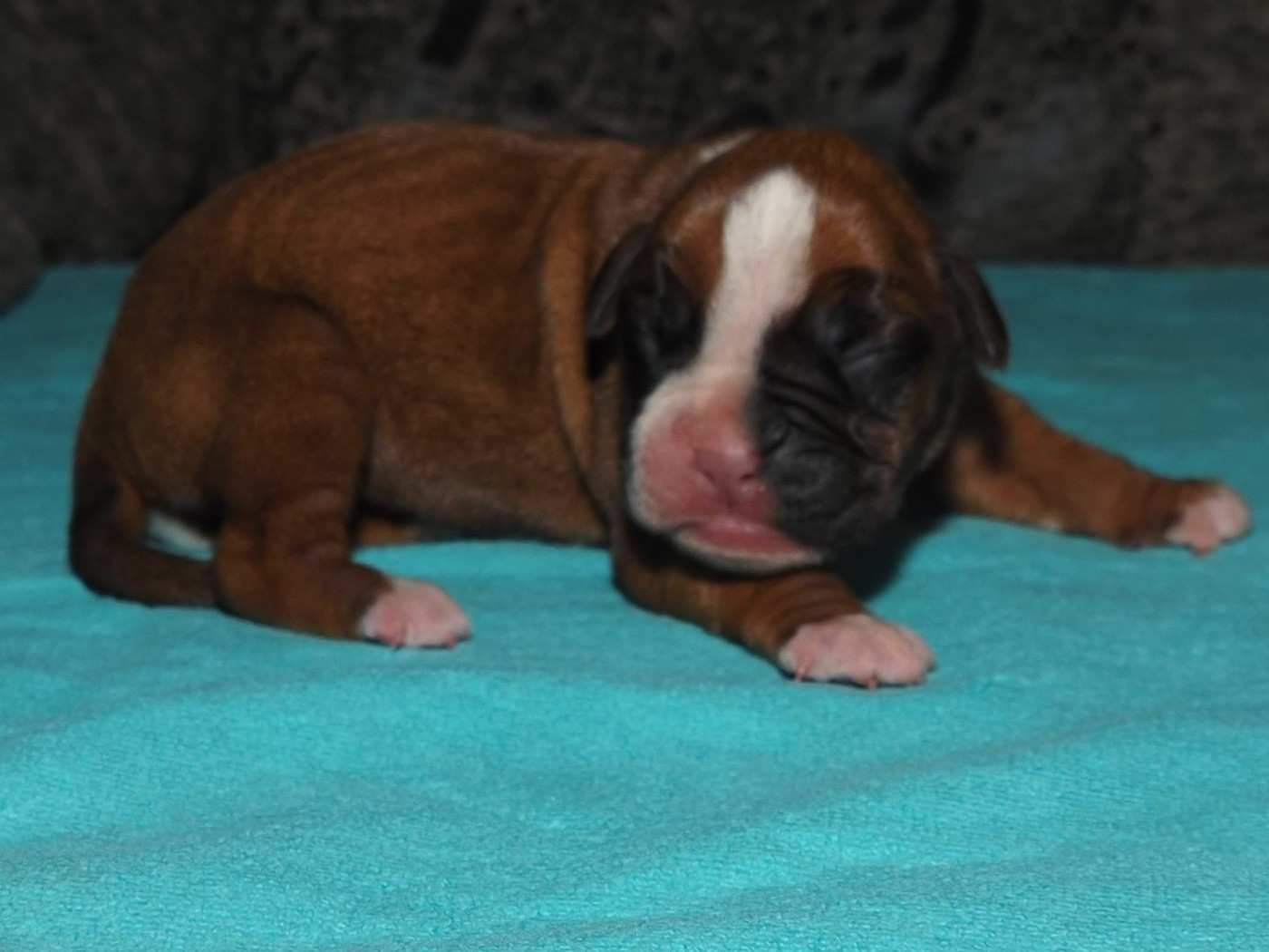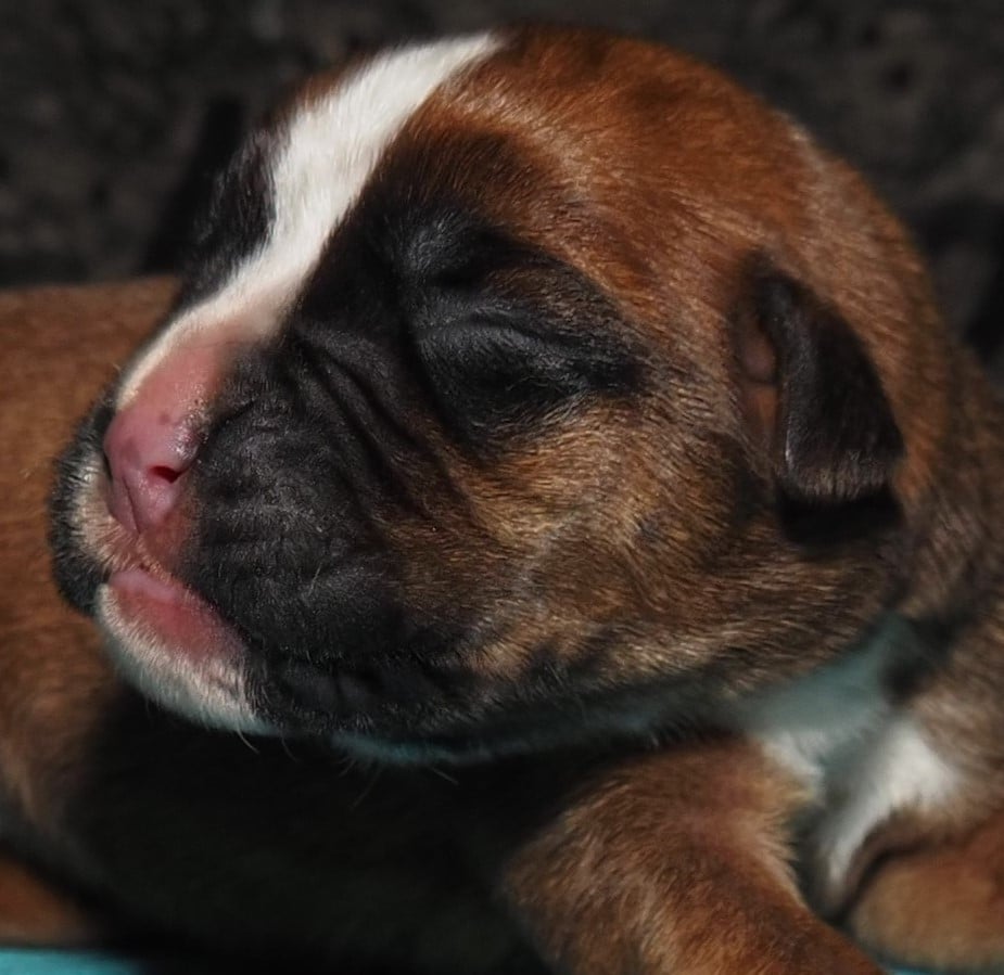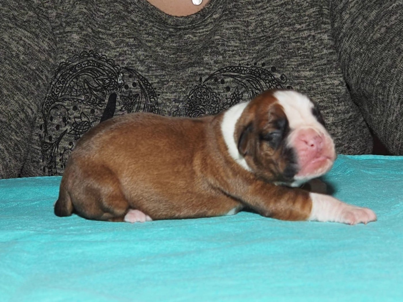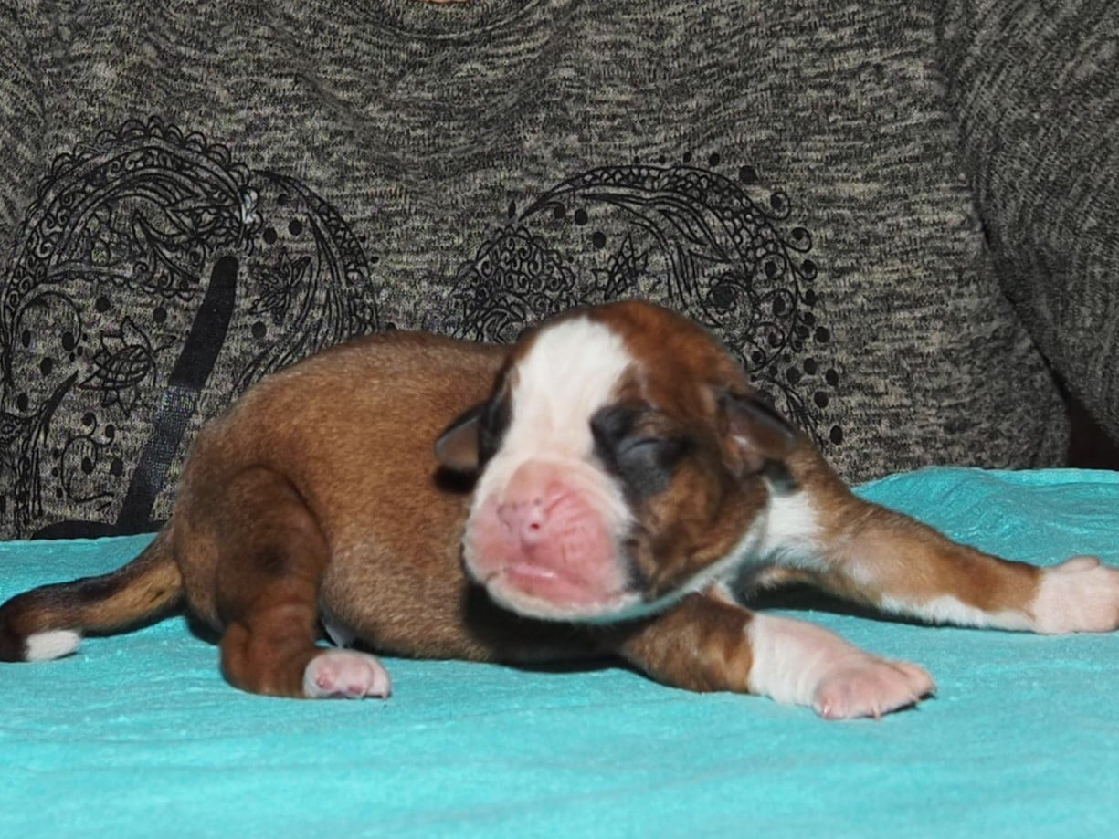 très jolie femelle marqué en blanc très compact et une belle expression faciale