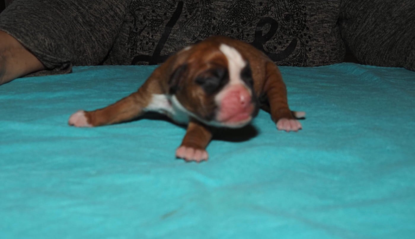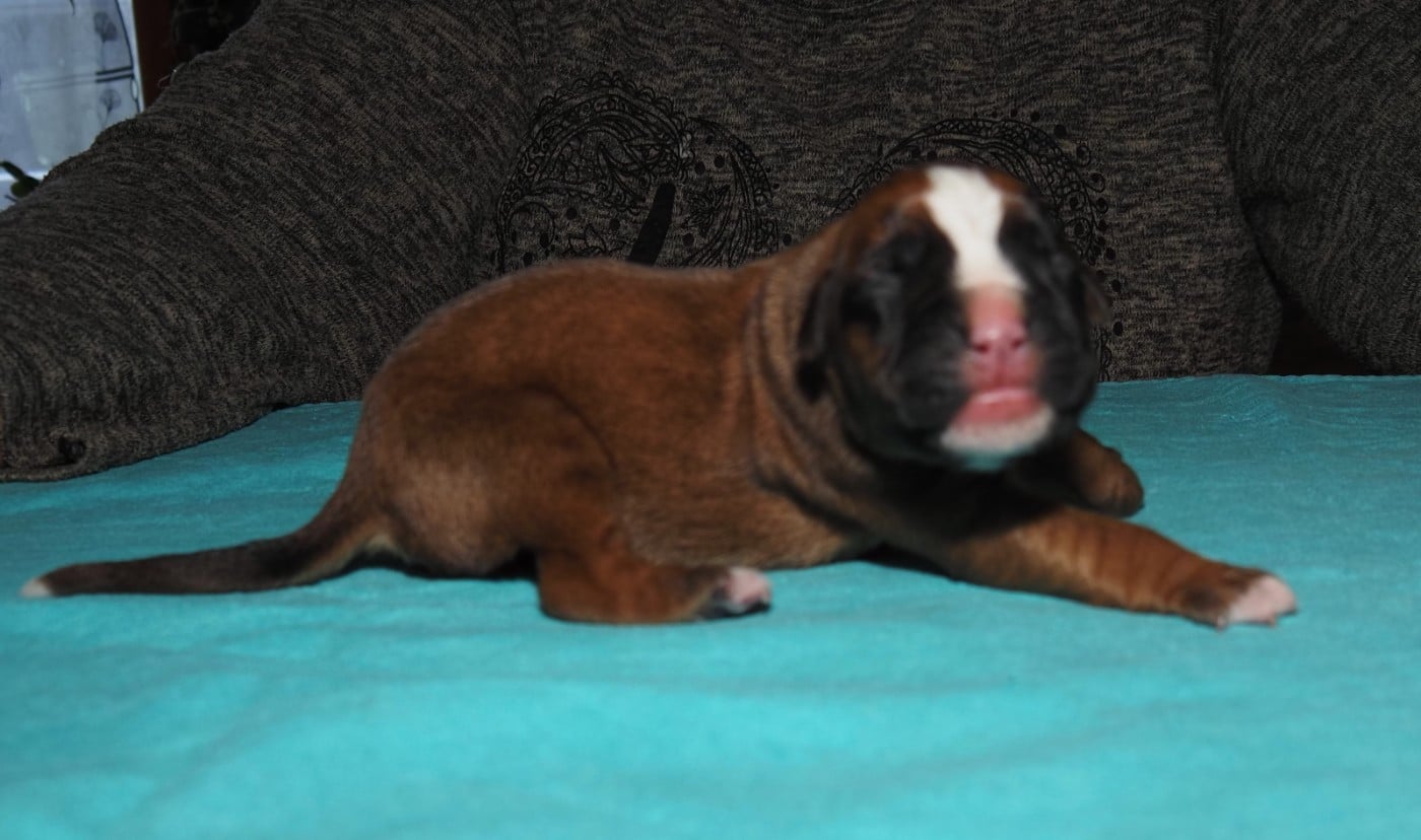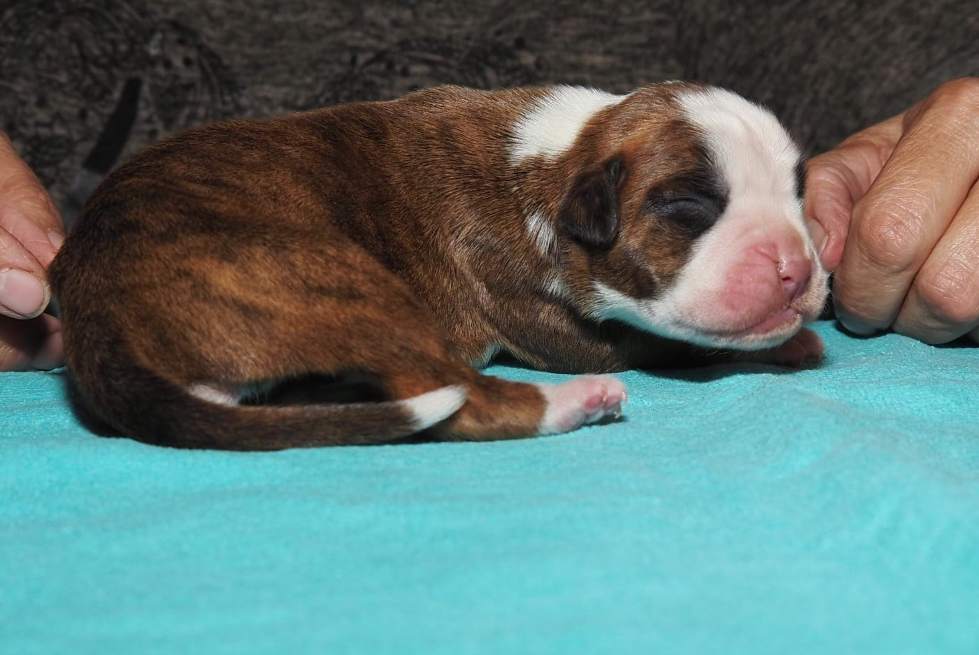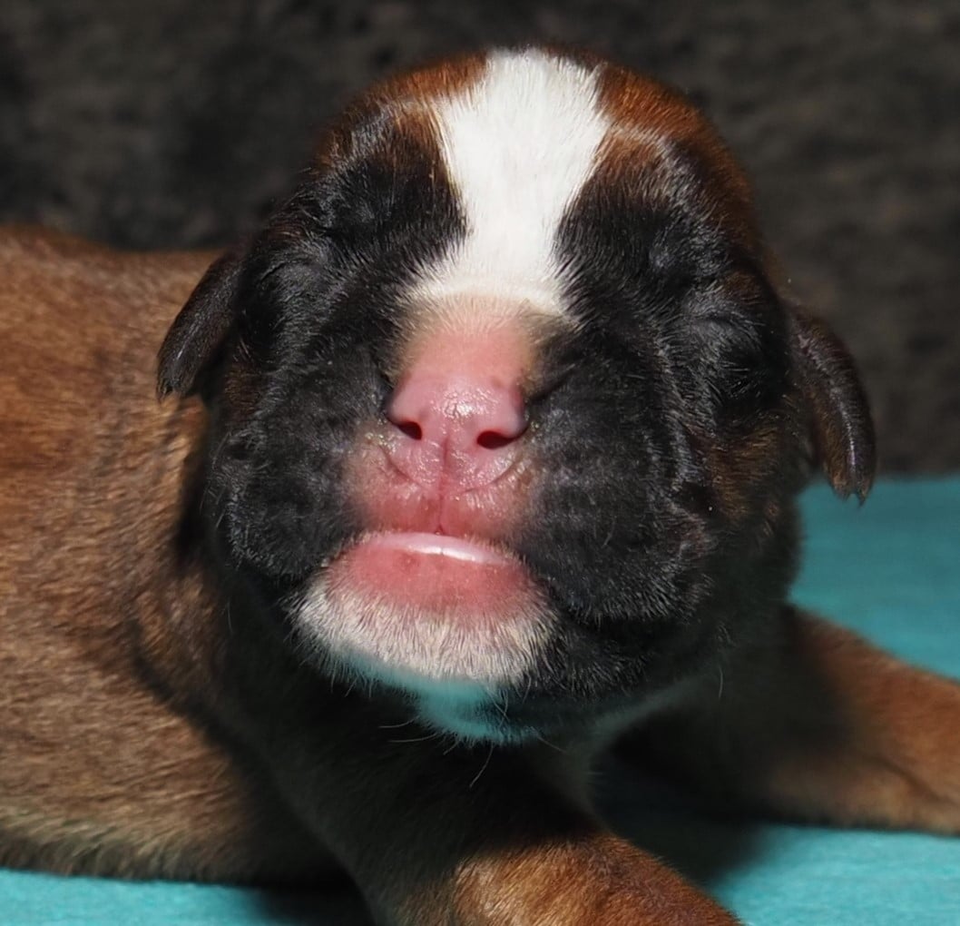 très jolie femelle marqué en blanc très compact et une belle expression faciale